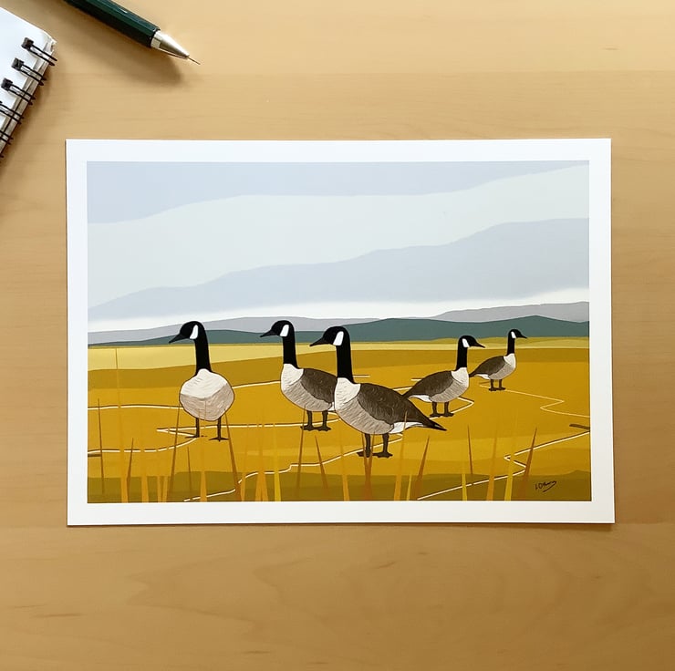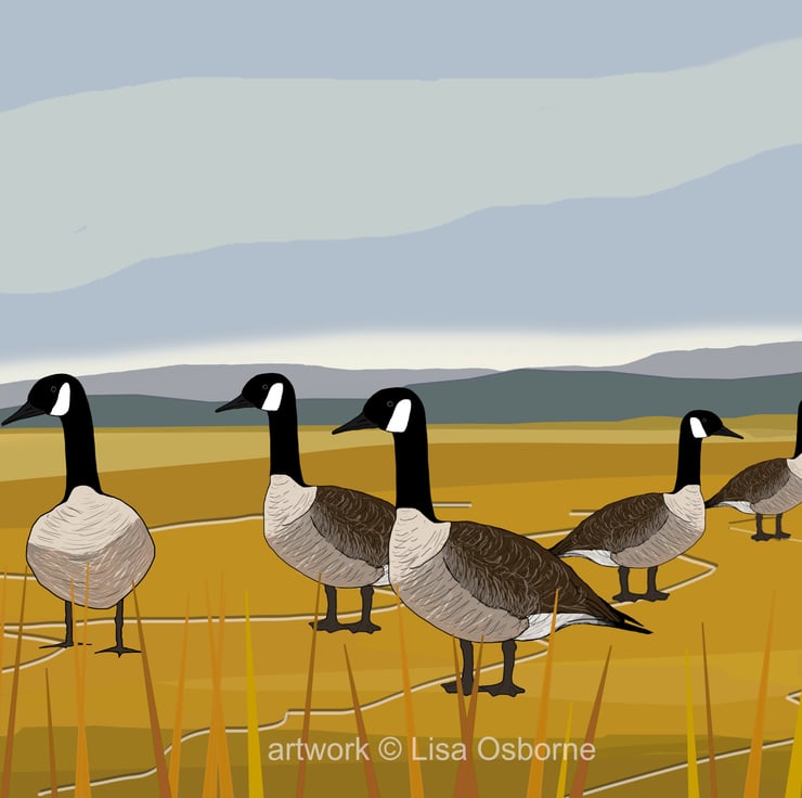 Canada geese - high quality open edition print from my digital illustration of Canada geese in the estuary.