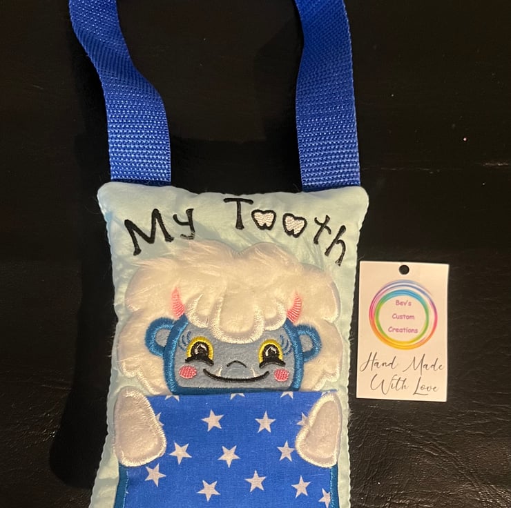 Handmade embroidered Tooth fairy pillow, no more searching for your little ones tooth under there pillow, just hang this little cushion on the door and place the tooth in the pocket.