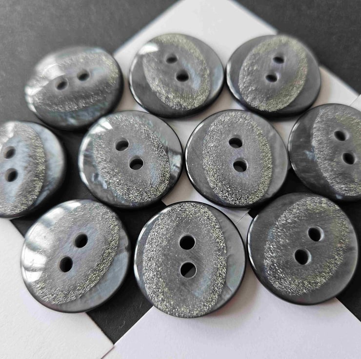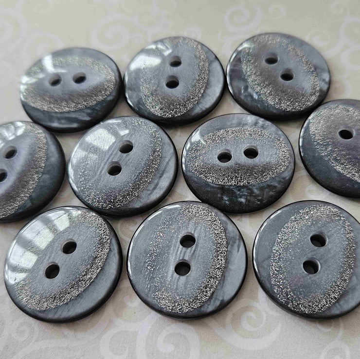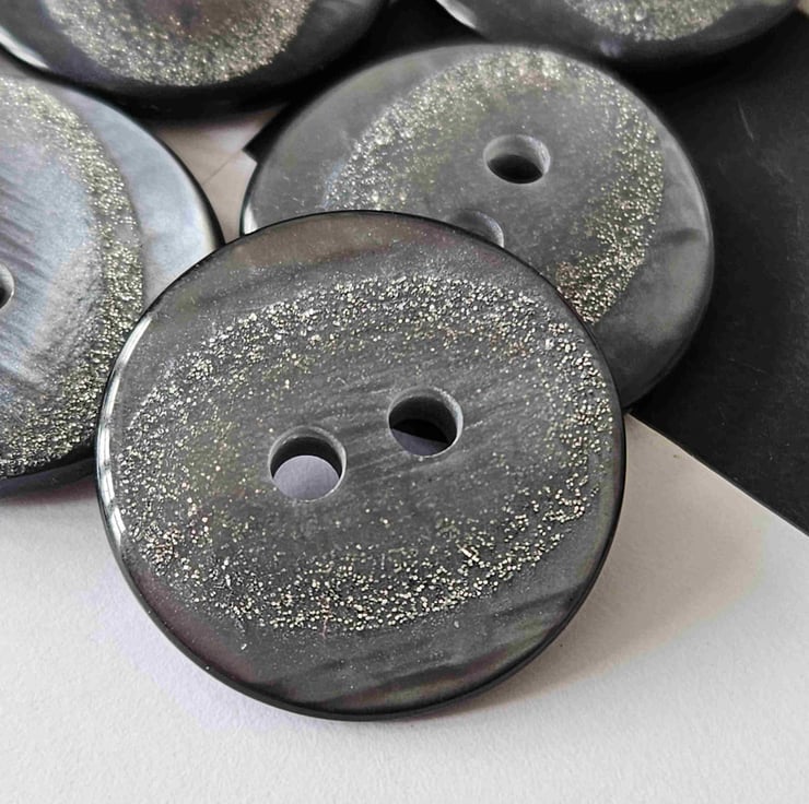 Italian Made Designer Buttons 22.4mm 7/8" 36 Ligne, random material, highly polished, fine silver glitter oval inset detail,