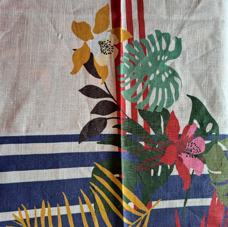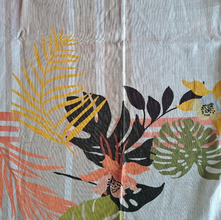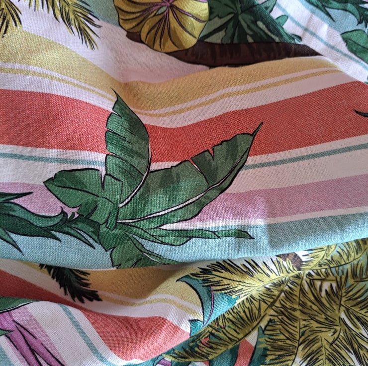4 Stripes and palm trees panel, linen viscose, 37cm (across selvedge) by 140cm.