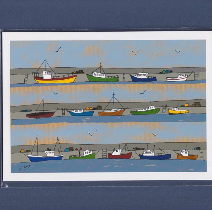 The harbour - A5 coastal art print - boats