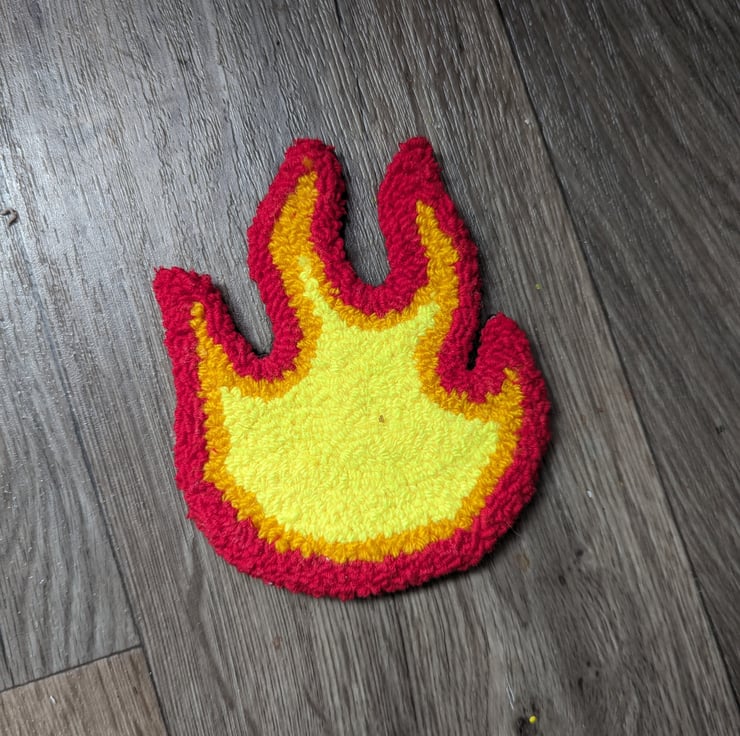 A handmade, needle punched mug rug, coaster or general decoration, made from acrylic yarn with a black felt backing.