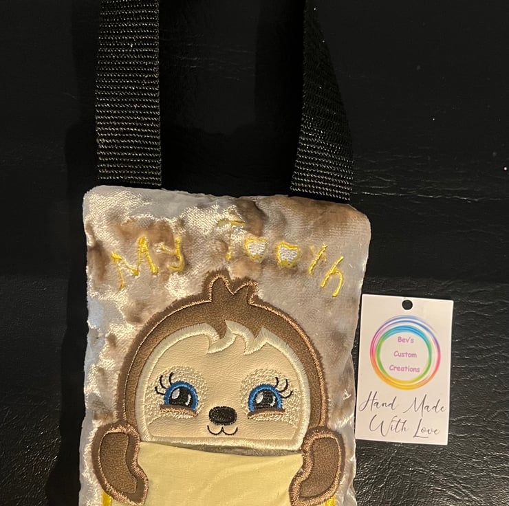Handmade embroidered Tooth fairy pillow, no more searching for your little ones tooth under there pillow, just hang this little cushion on the door and place the tooth in the pocket.
