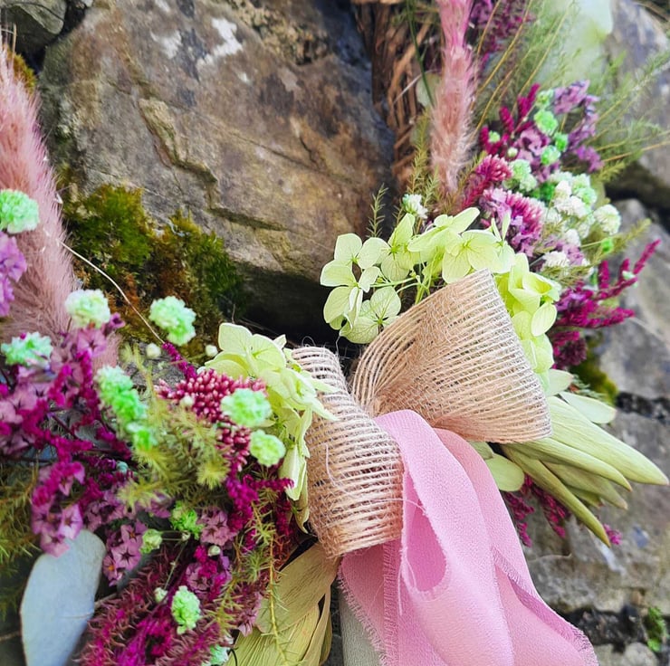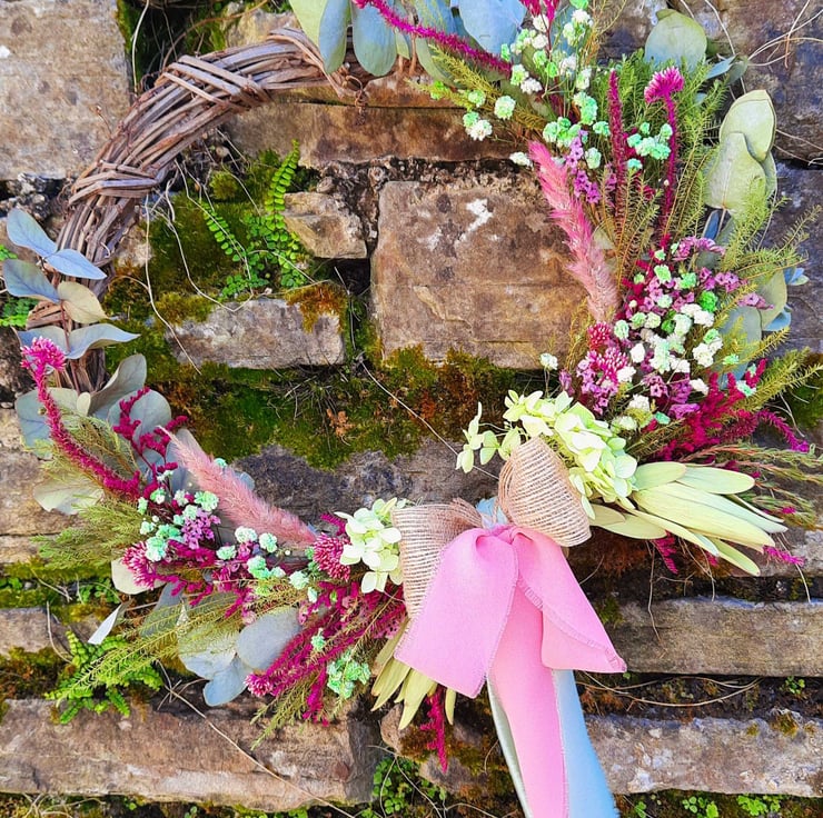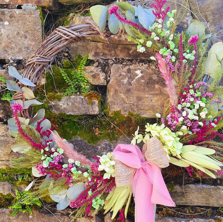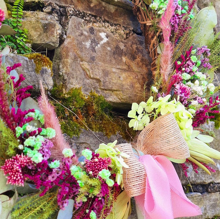 Meet 'Bohemian,' a stunning wreath created with 70% foraged, dried, or recycled materials( by me). It is the perfect embodiment of creativity and sustainability.