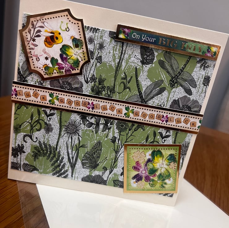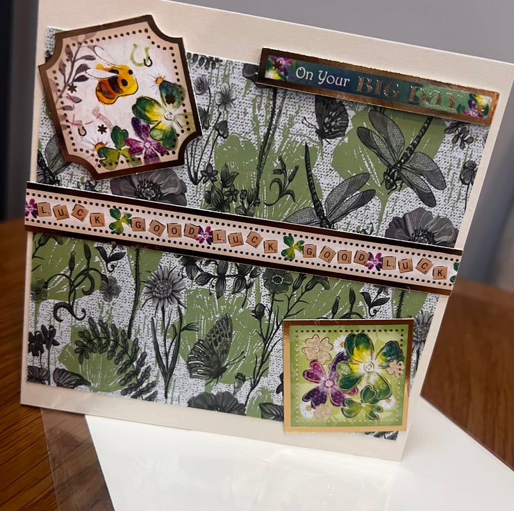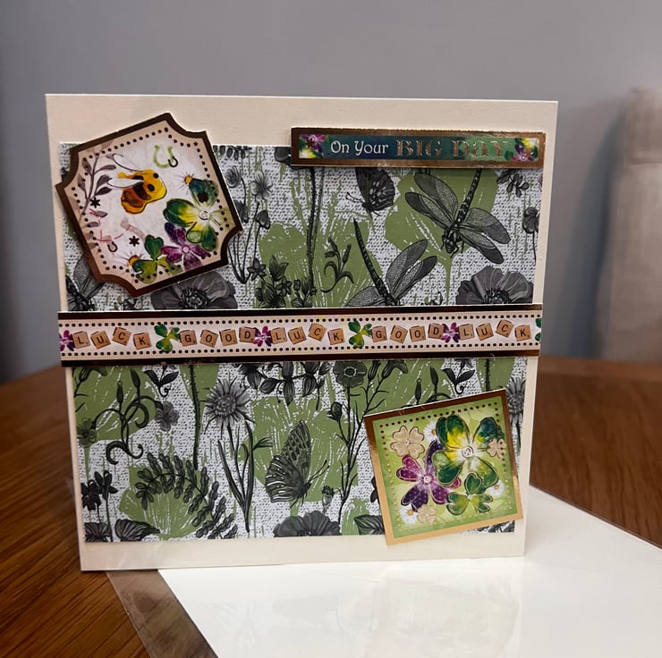 Nature theme good luck with green and gold theme, To wish those good luck with exams or driving tests.