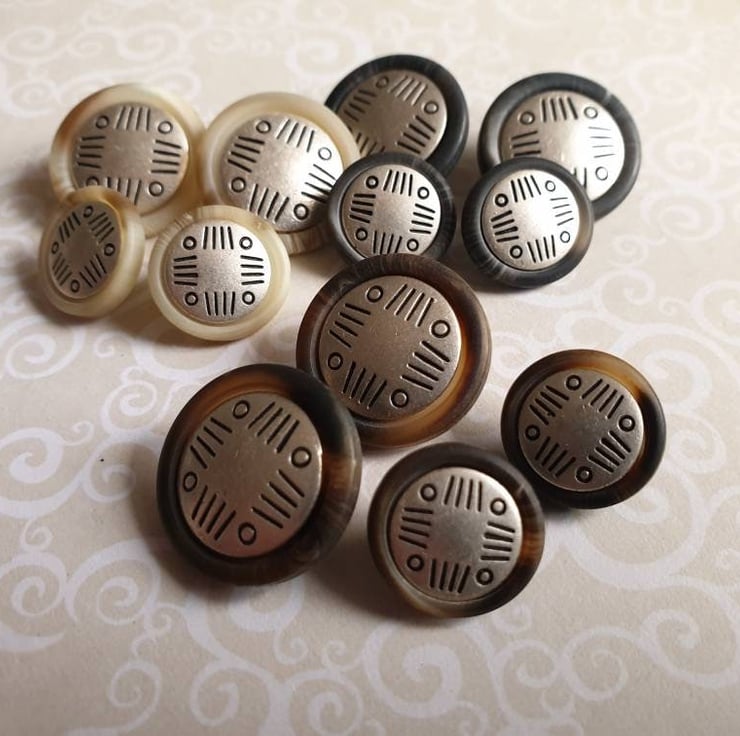 GREY MIX Rare Italian Polyester hornMetal Antique Silver centre Buttons Available in 3 colours.