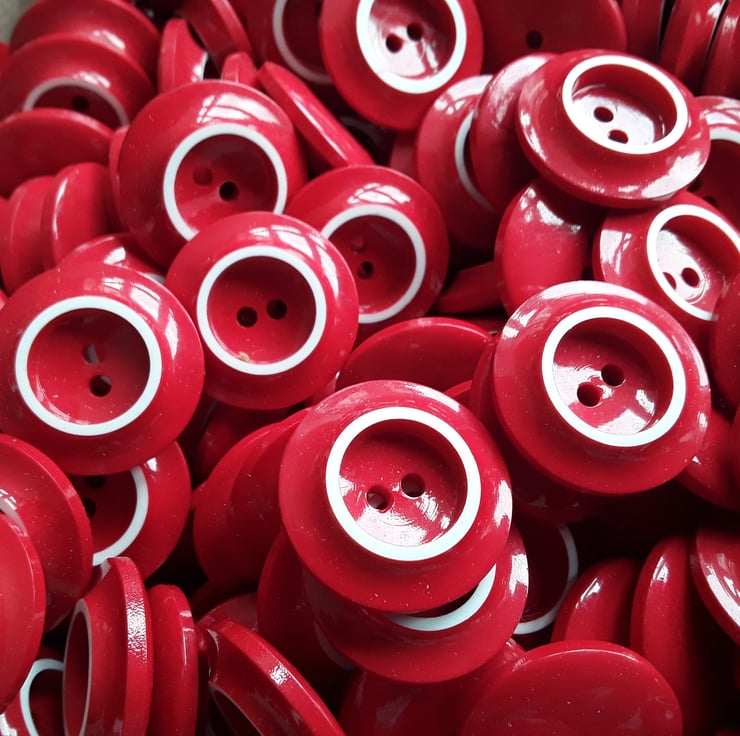 Rare Vintage RED WHITE Polyester Buttons 1"
