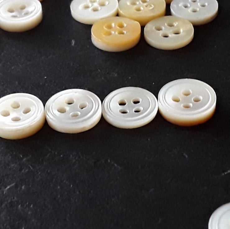 Real Shell Natural Pearl Natural & Organic product. See all pictures before purchasing as the yellow comes through as is normal for this vintage item....!