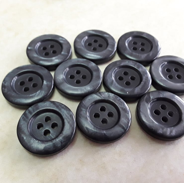 7/8" 23mm, 36 Llgne ITALIAN Polyester Buttons. Mid Grey broad rim classic