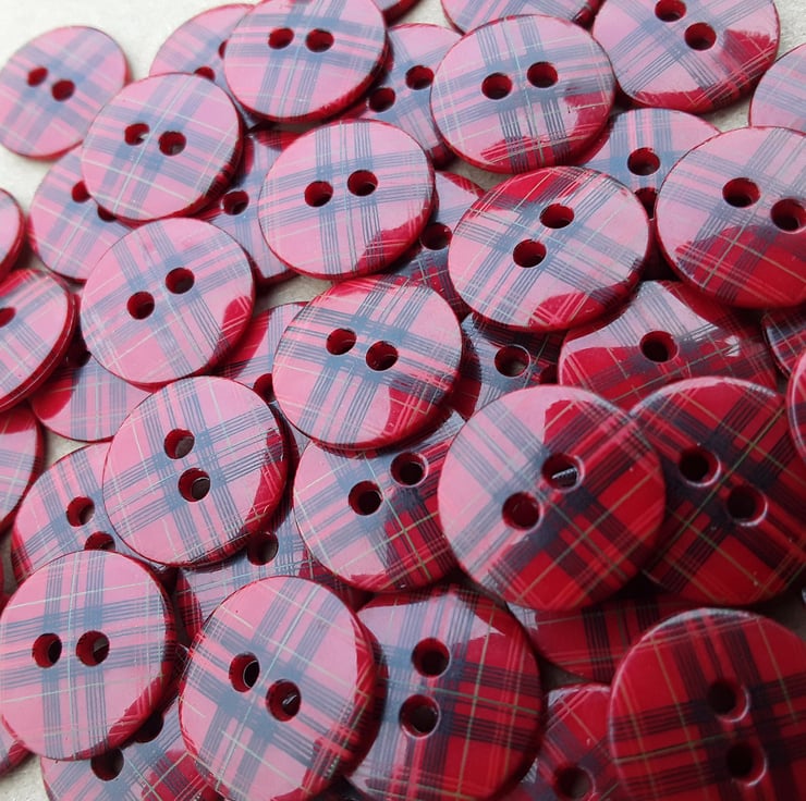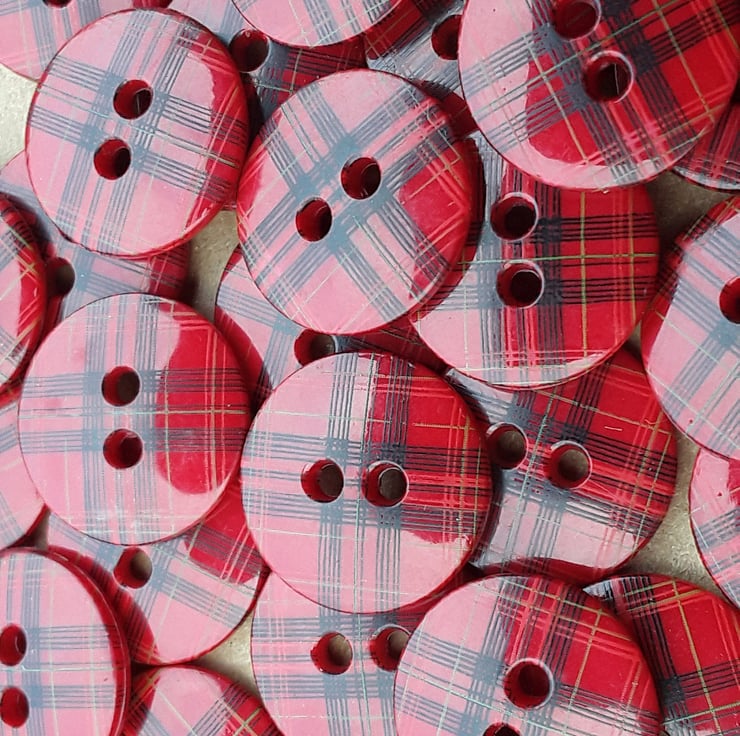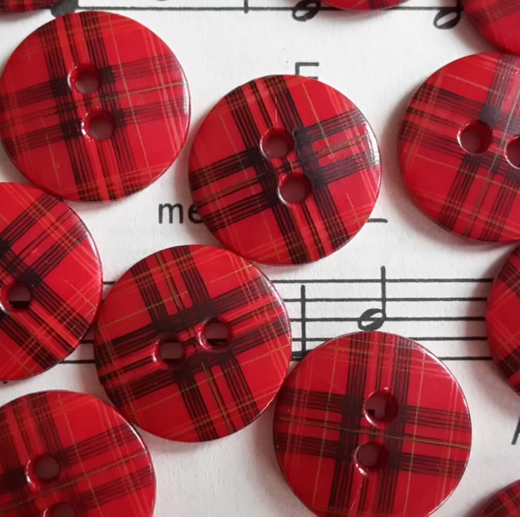 9/16" Red Tartan Button 15mm