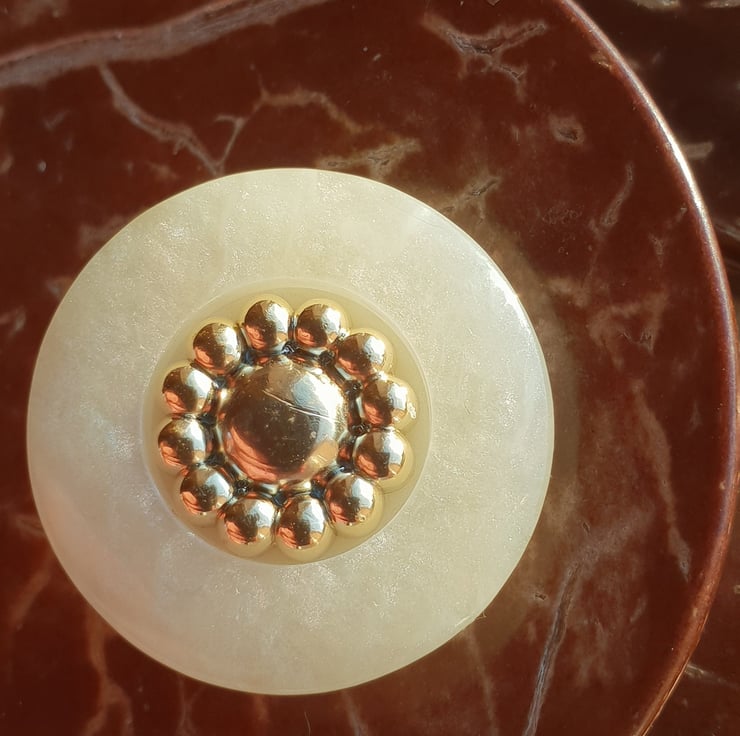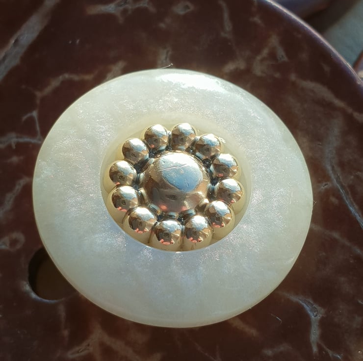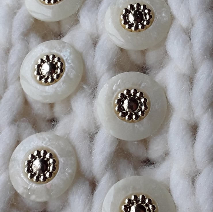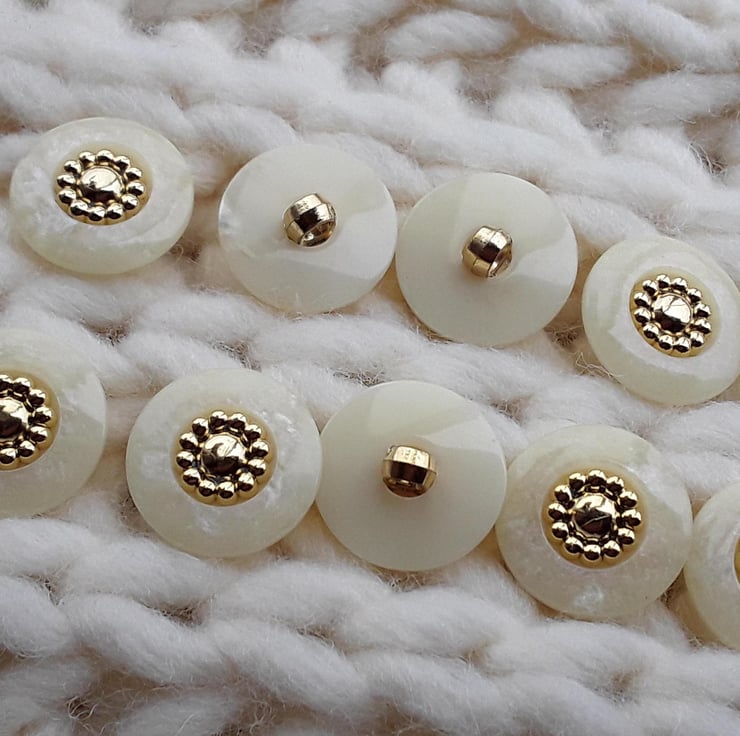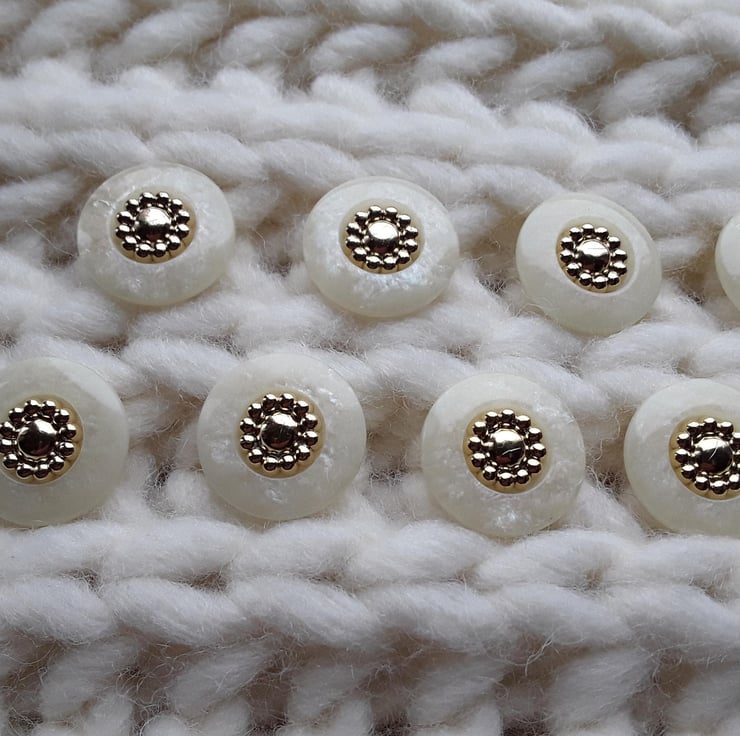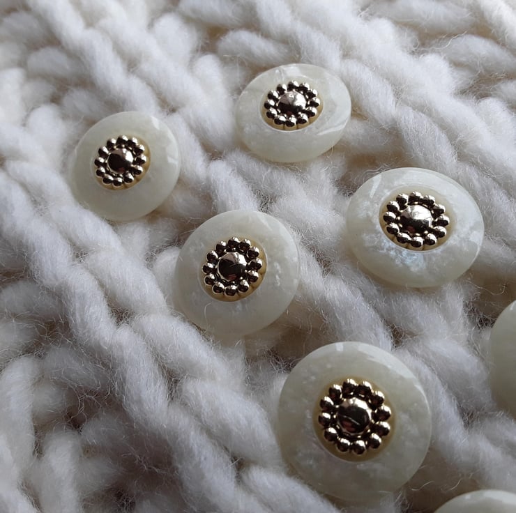 18mm Almost 34" French Poly Pearl & Gold Buttons 28 ligne