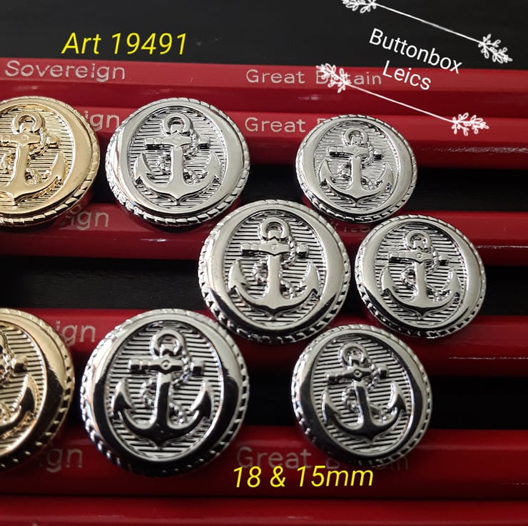 15mm & 18mm Anchor Buttons Silver and Gold ( Lightweight )