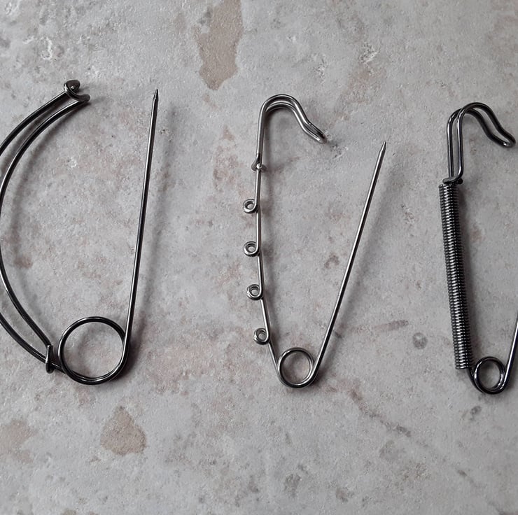 2. Bright silver finish traditional shape with a twist "4 Ring" design pin (centre on photograph)