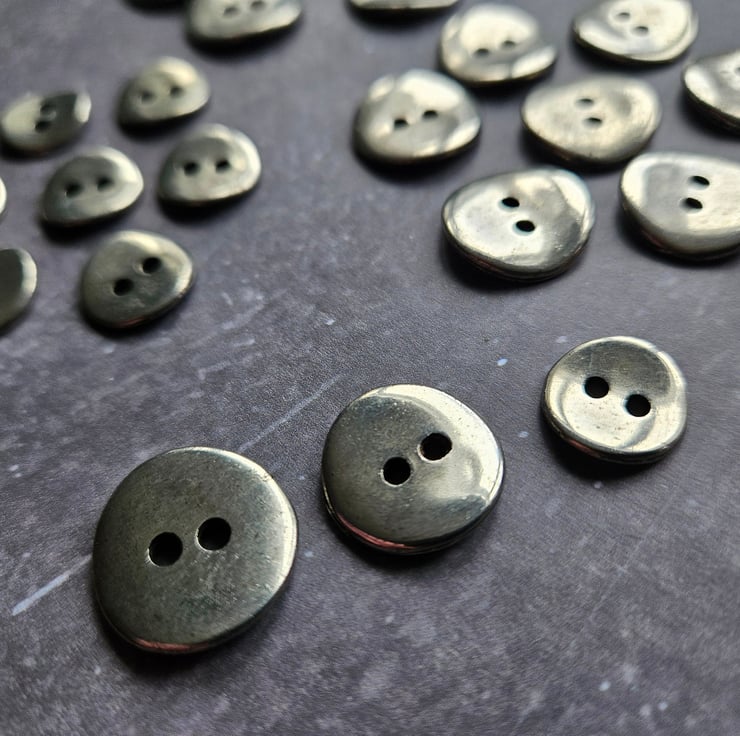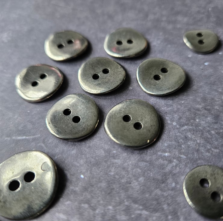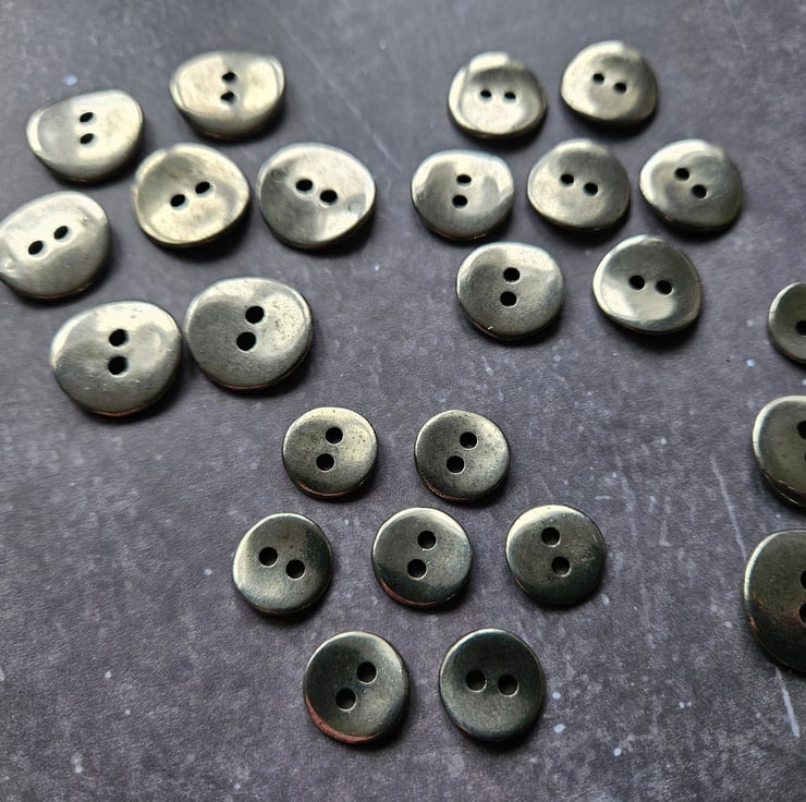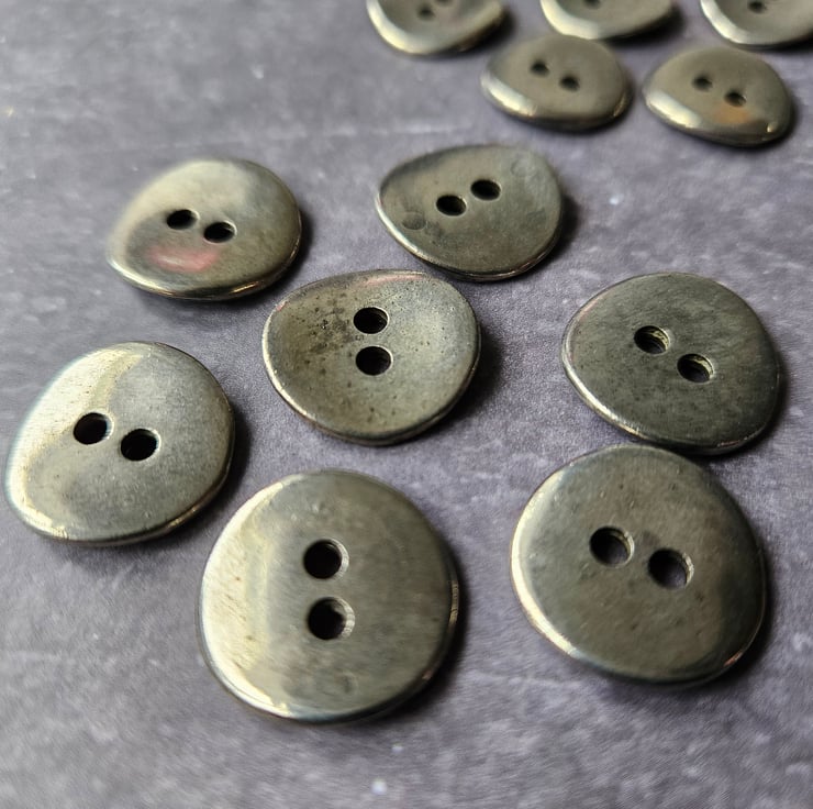 13/16" 17.8mm, 28 Ligne Italian made 1988 medium weight alloy metal Buttons, Antique Silver finish, Saddle back, super smooth available in 3 sizes, this being the largest.