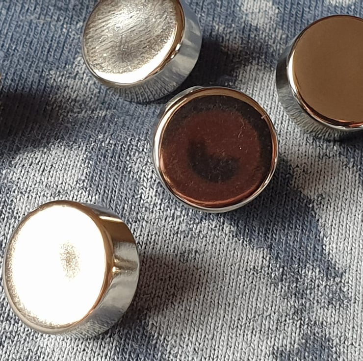 ABS is a light weight material given you the metallic look without the weight of metal alloy, making this use-able, commonly used in the manufacture of stores Quality Buttons