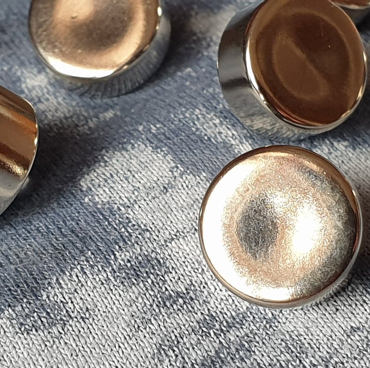 1/2" 12.5mm 20L SILVER "Super Thick" SHANK BUTTONS . A fist look these fabulous buttons look flat top however on closer inspection these are high silk finish with a slight dimple.