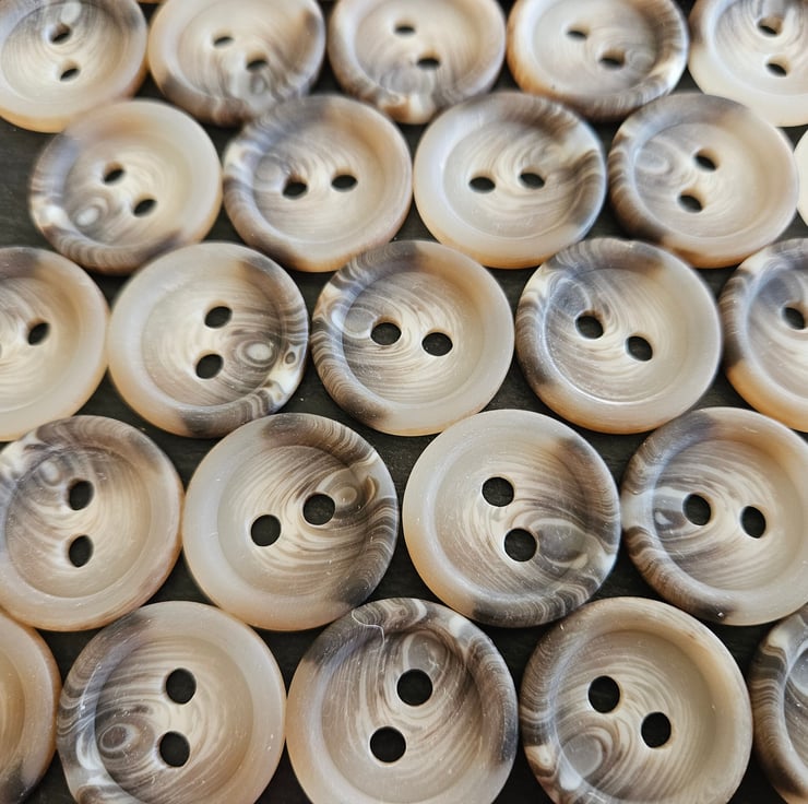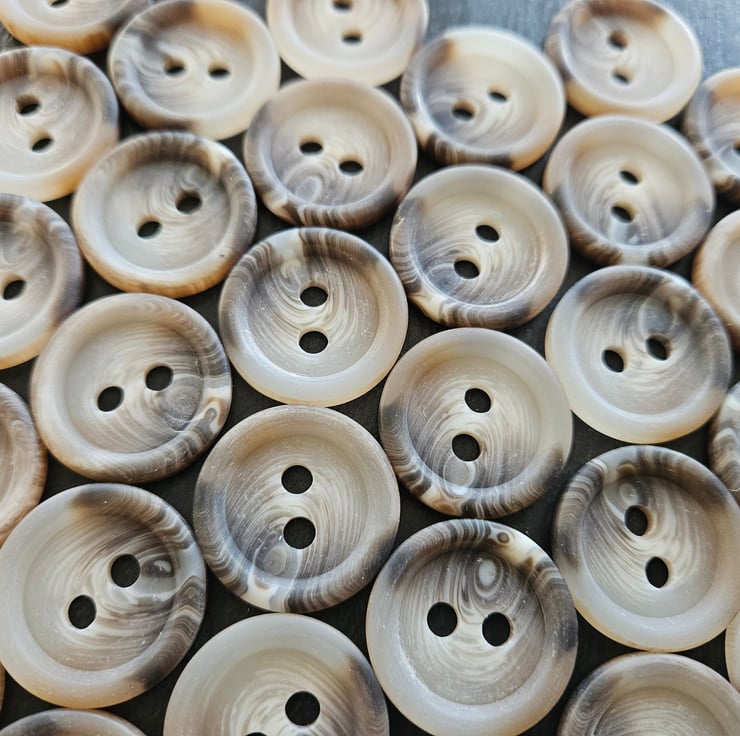 1" 25mm 40L Polyester Horn Buttons. Classic broad rim, oversized holes ideal for chunky knit, satin finish