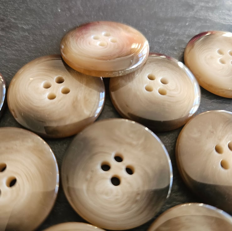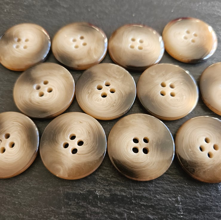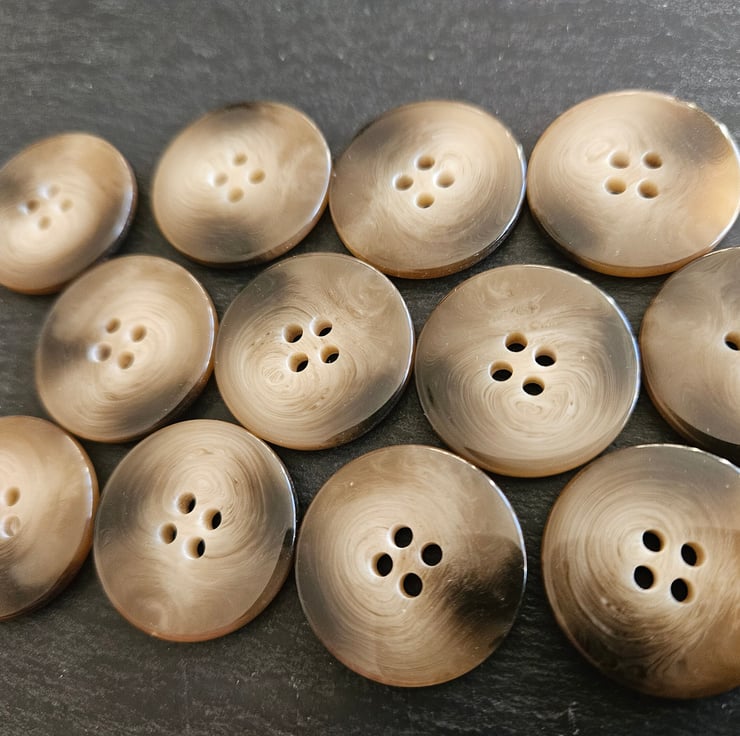 1" 25mm 40L Polyester Horn Buttons. Classic single dome, flat top or back, you decide... Tortoise Shell look high polished finish