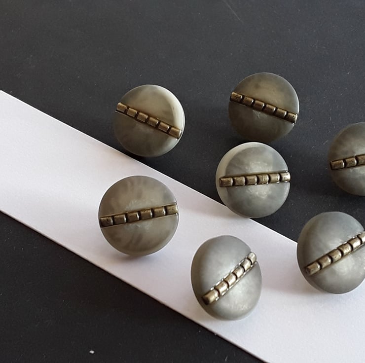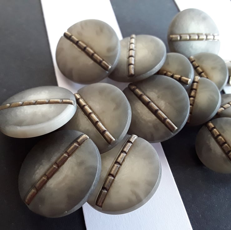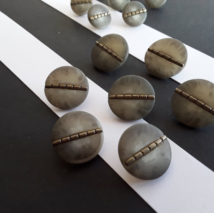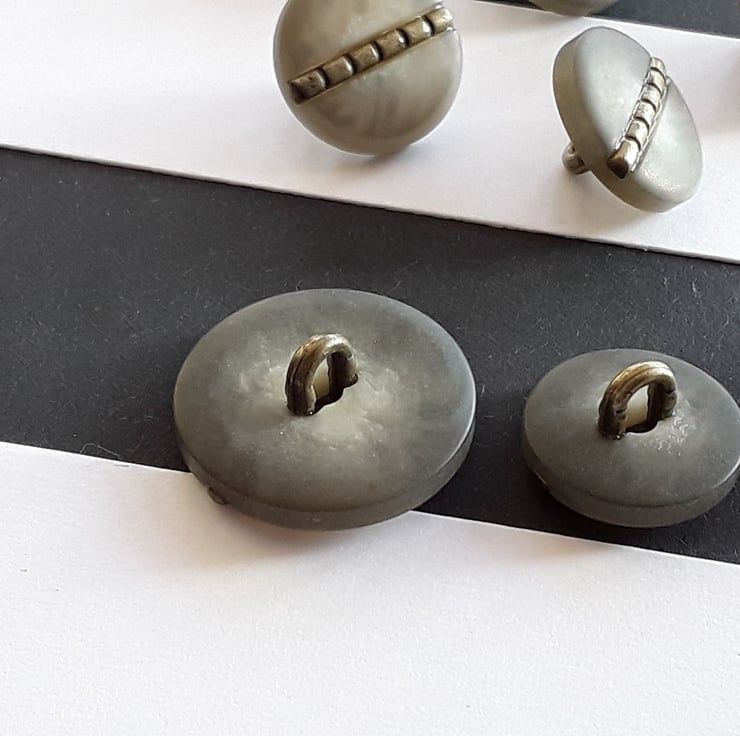 GREY MIX Rare Italian Polyester horn / Metal Antique Brass centre bar Buttons