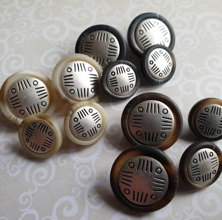 BROWN MIX Rare Italian Polyester hornMetal Antique Silver centre Buttons Available in 3 colours.