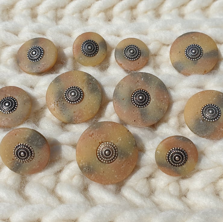 One of two colours in this matt stone effect button. With Antique Silver Centre.