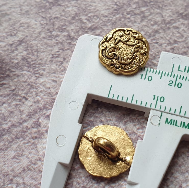 11.5mm 18L pretty filigree Buttons 1980s Vintage Antique Gold