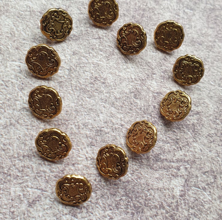 Classic 1980's Vintage metal buttons Old Antique Gold...