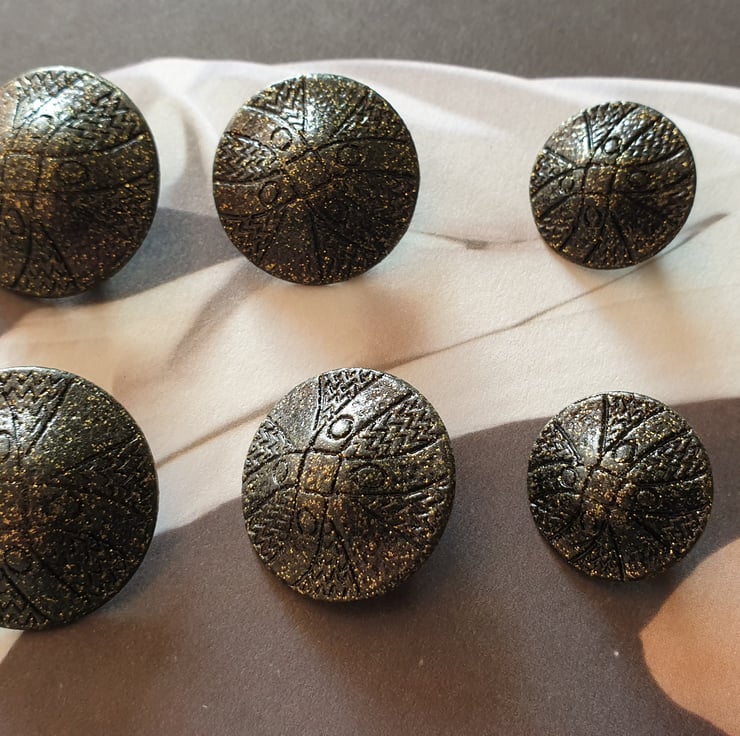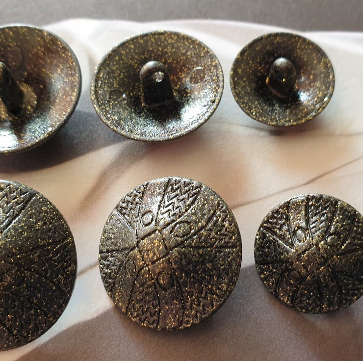 7/8" 22.4mm 36 Ligne Italian made Black (or dark metal) Gold sparkle Buttons 1990's