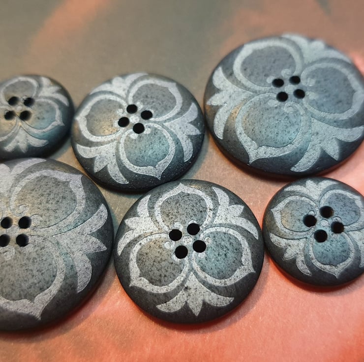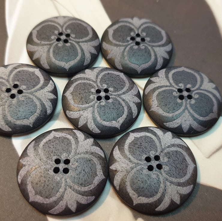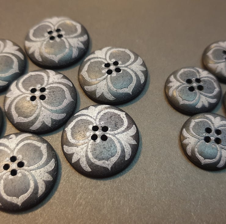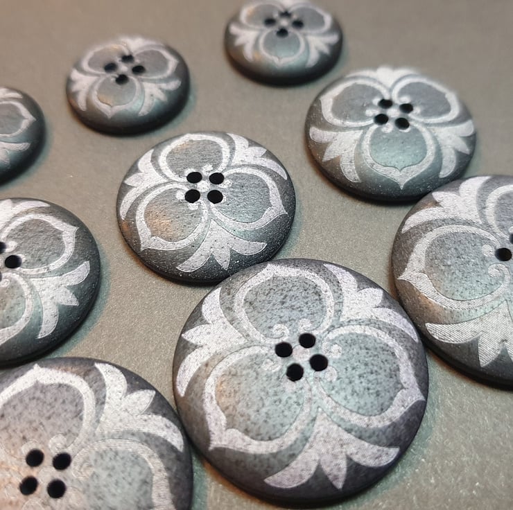 18mm, 22.5mm & 28mm Italian Laser detailing Grey Polyester designer Buttons