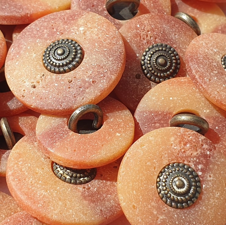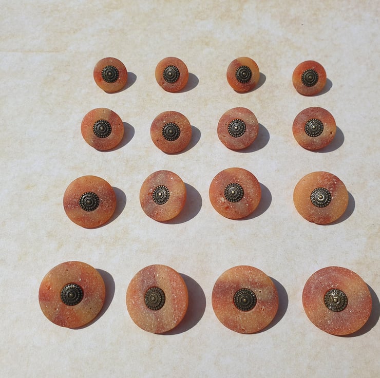 One of two colours in this matt stone effect button. With Antique Brass centre.