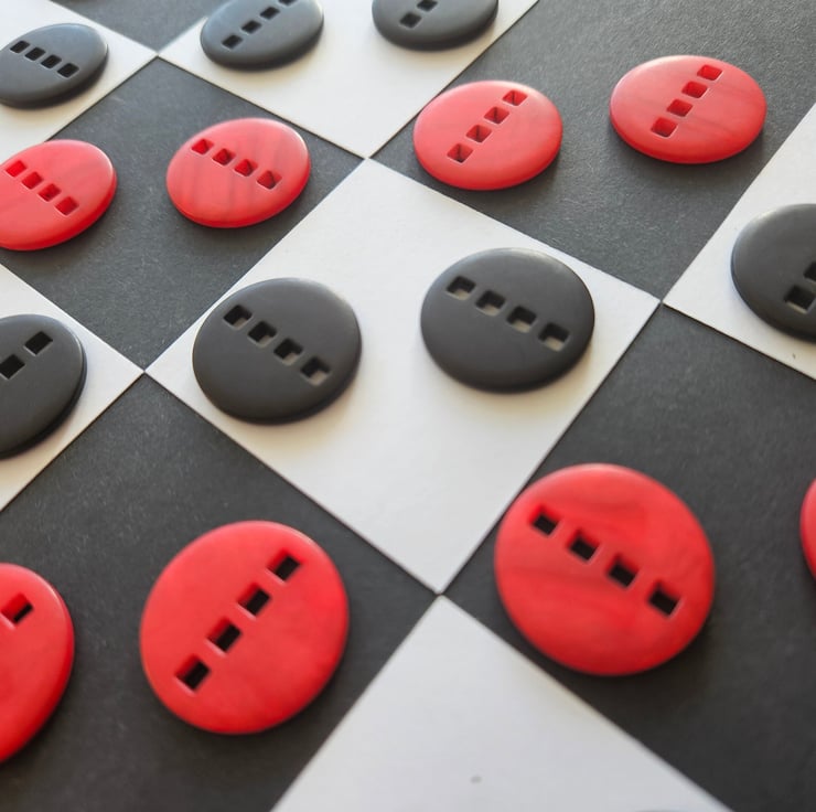 Art Decco Style Pearlised Decorative Button 23mm 7 8" RED & BLACK