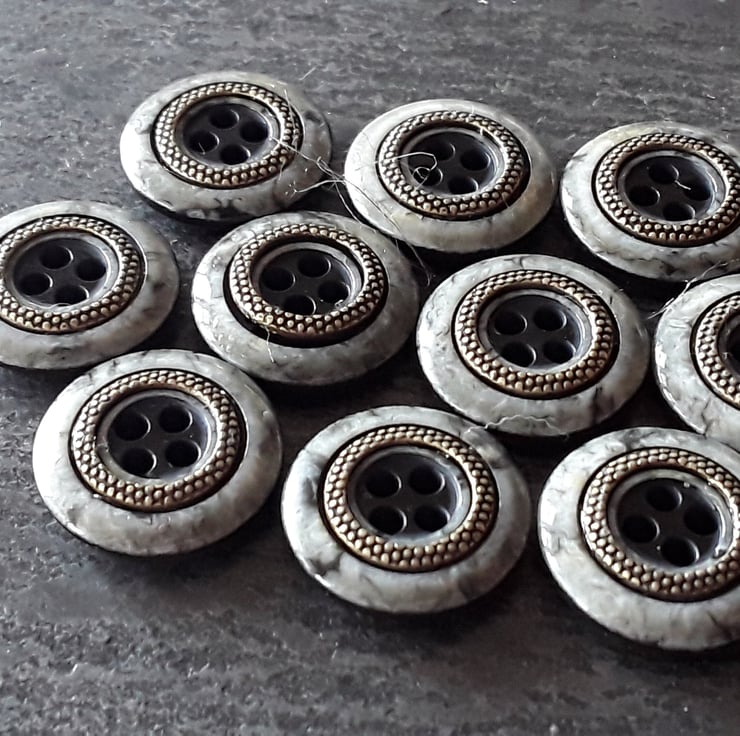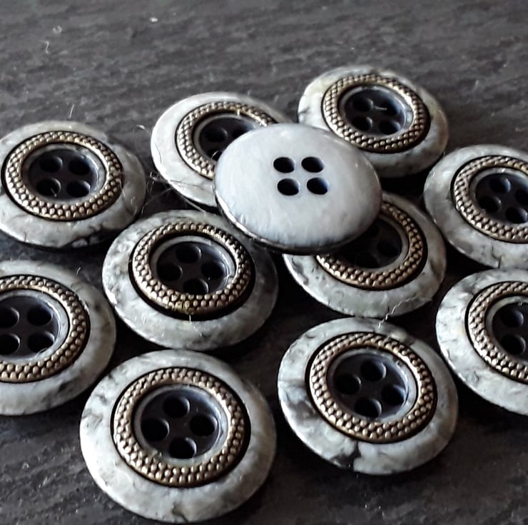 9/16" 15mm 24L German Polyester Grey Stone effect with Antique Brass glued insert.