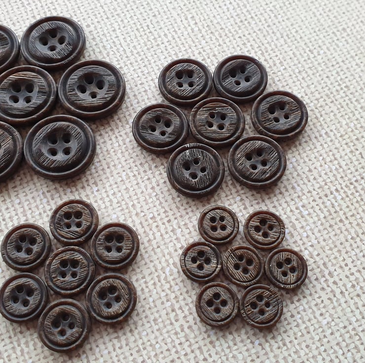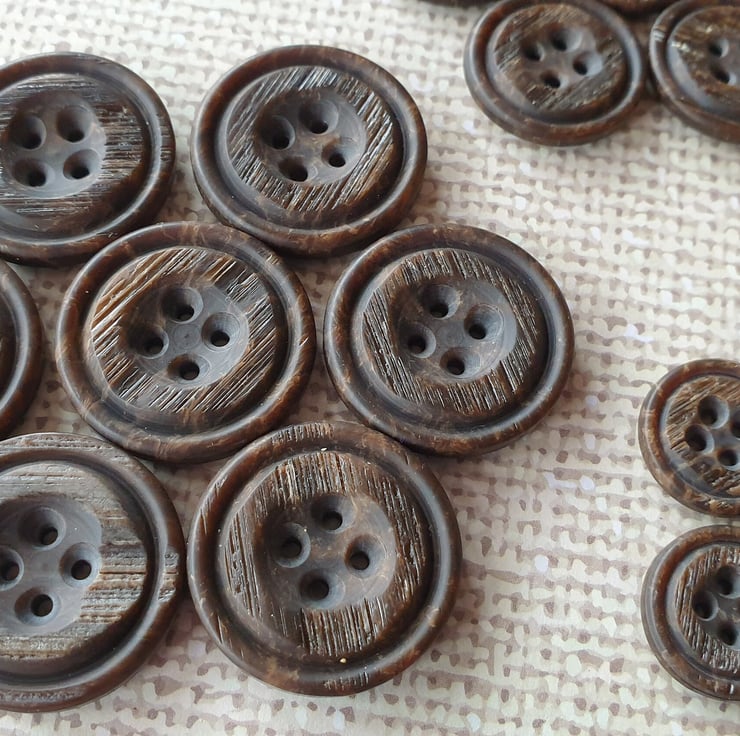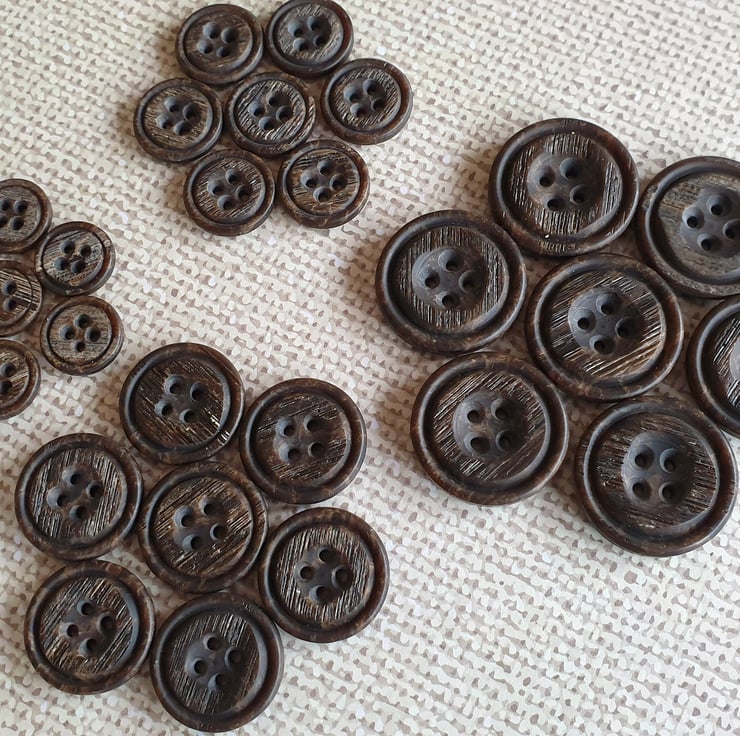 Italian Polyester wood/bark effect brown Buttons, uneven random, please see all photos, available in 4 sizes in total.