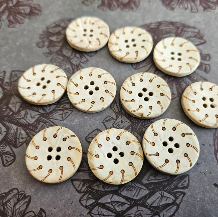 7 8" 22.4mm 36 Ligne Designer Real Coconut Buttons Bleached and Laser cut design