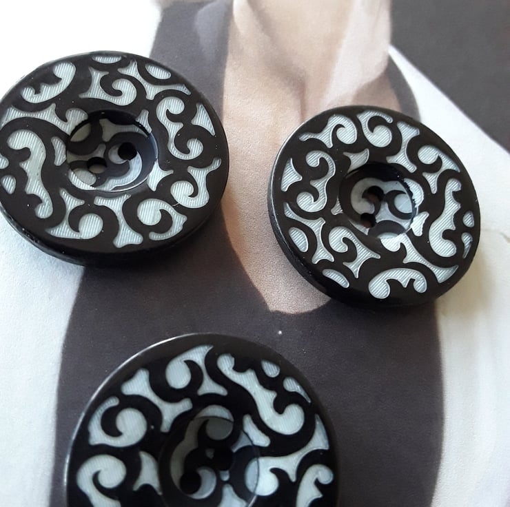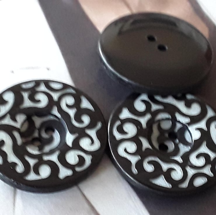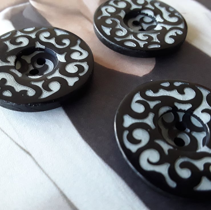 1 & 18" 28mm 44L Designer filigree button Black and pale Grey mix.