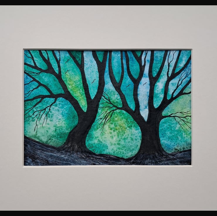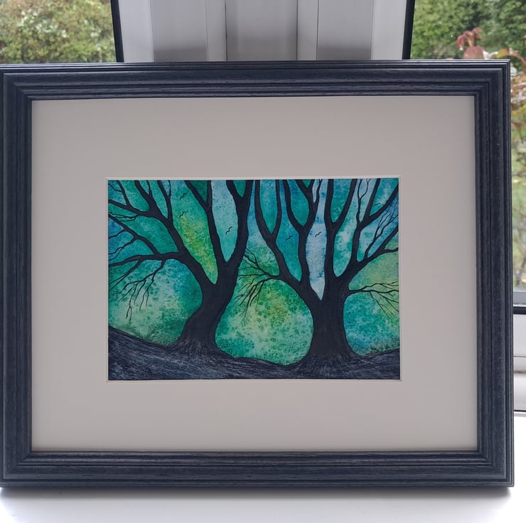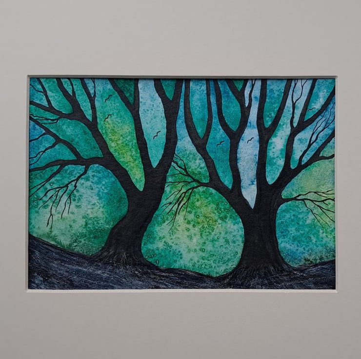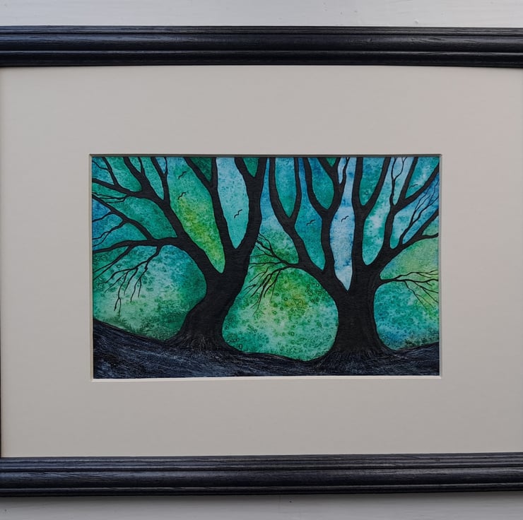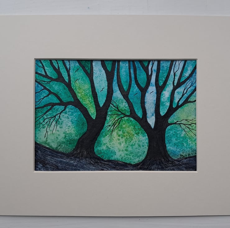 Woodland Calm is an evocative original painting created with watercolours and ink.