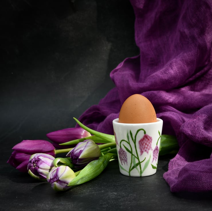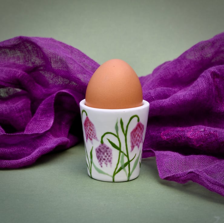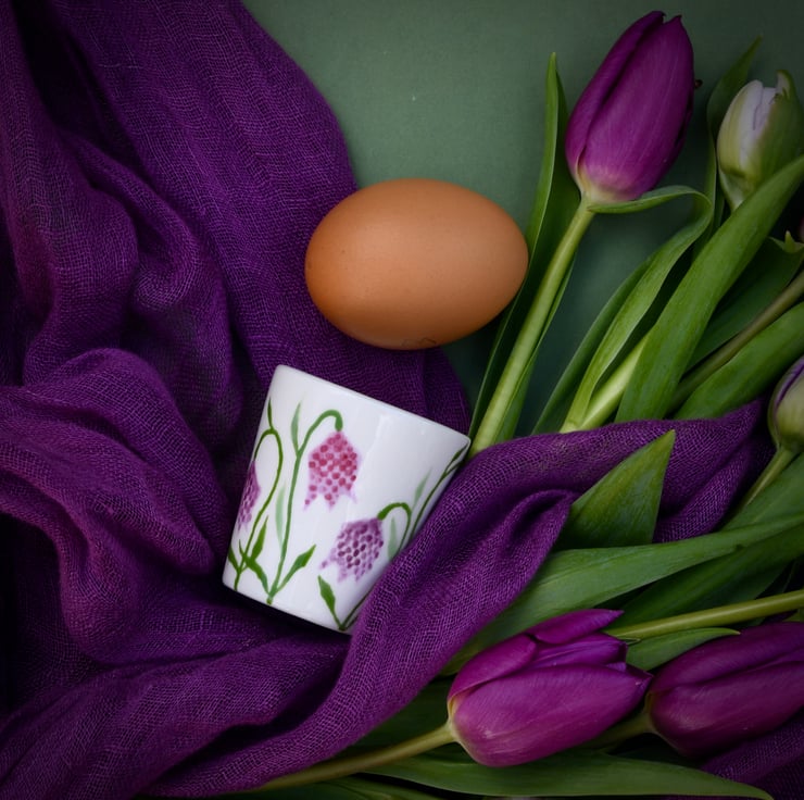 The Snake’s Head Fritillary Egg Cup is covered in hand painted little purple fritillary flowers, bring a touch of spring to your breakfast table.