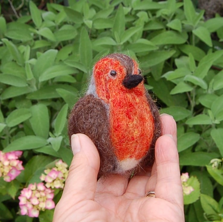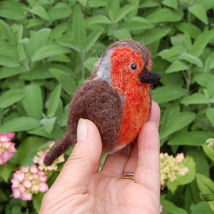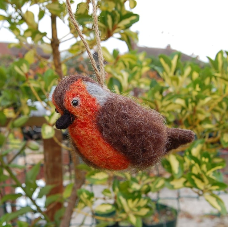 A cute robin made by needle felting wool fibres. Ready for your Christmas tree.