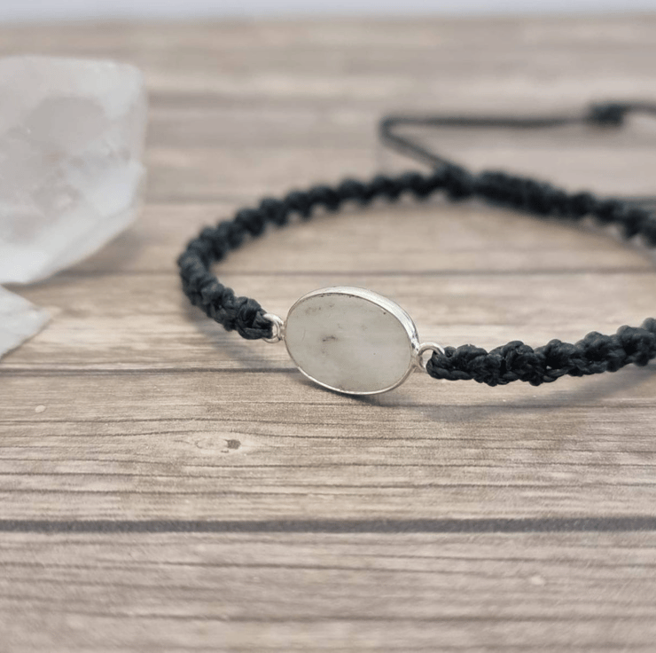 waxed Brazilian cord - Sterling silver Moonstone connector - sliding knot closure