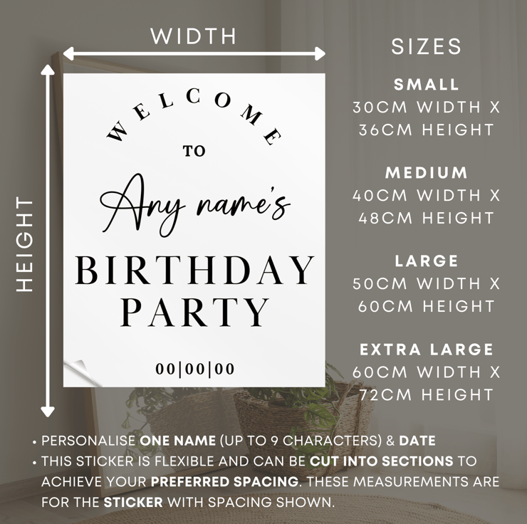 Arched Welcome - Birthday Decal: Personalised Mirror Sticker Party Decor