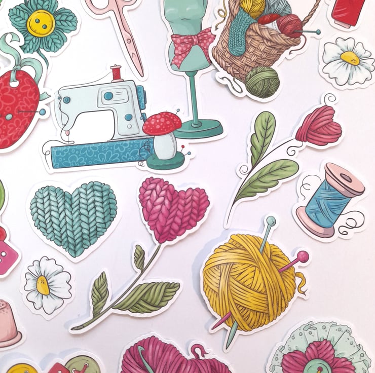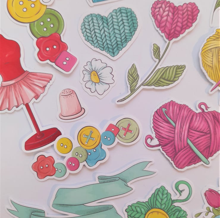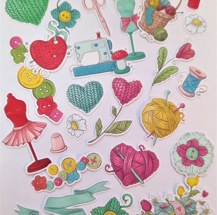 A pack of handmade die cuts / ephemera / embellishments with a doodle crafts and hobby theme printed onto 250gsm silk card. Ideal for card making, scrap book layouts, journaling, etc. There are 23 in each pack. Sizes range from 2cm to 9cm.