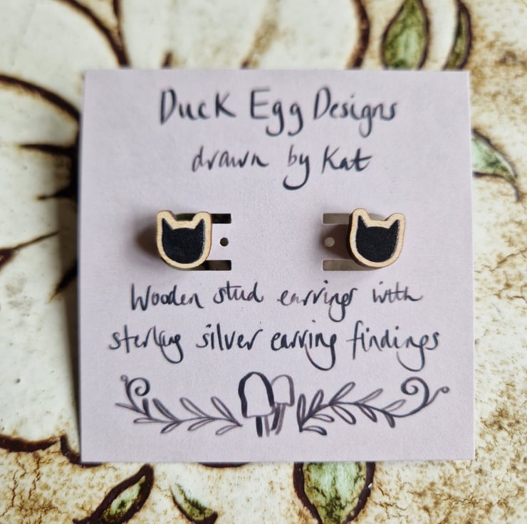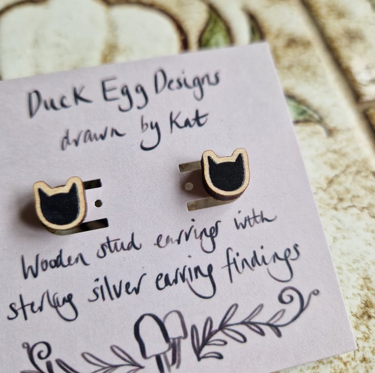 Black cat earrings designed by me and made in the my little studio using FSC certified charms featuring my artwork.