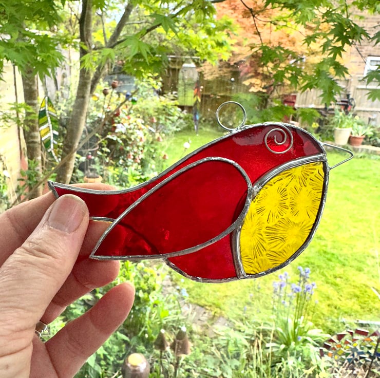 Bird suncatchers handmade in beautiful stained glass by Carole’s Glass.