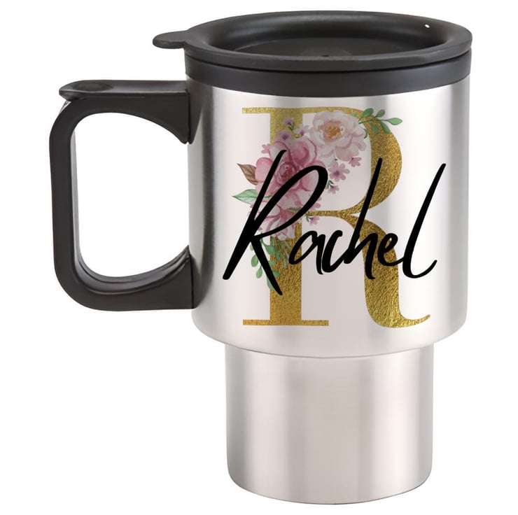 Personalised Gold Initial and Name Travel Mug - Personalised travel mug Gift