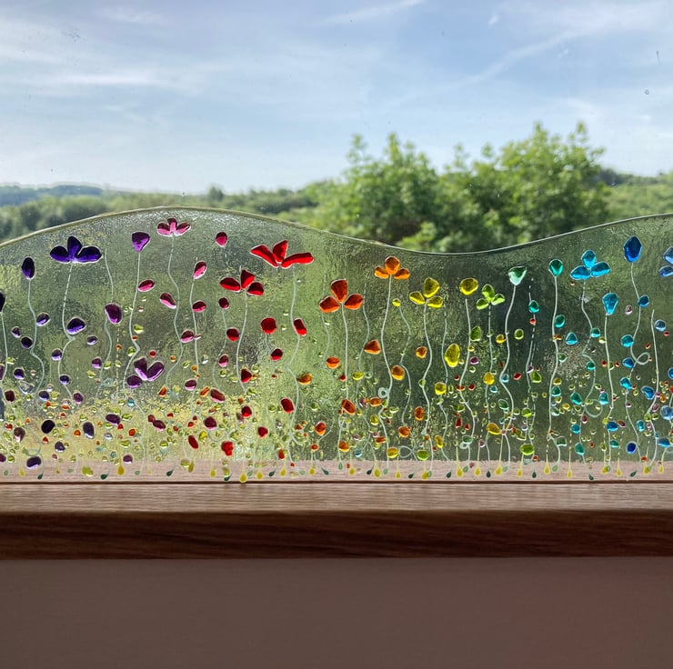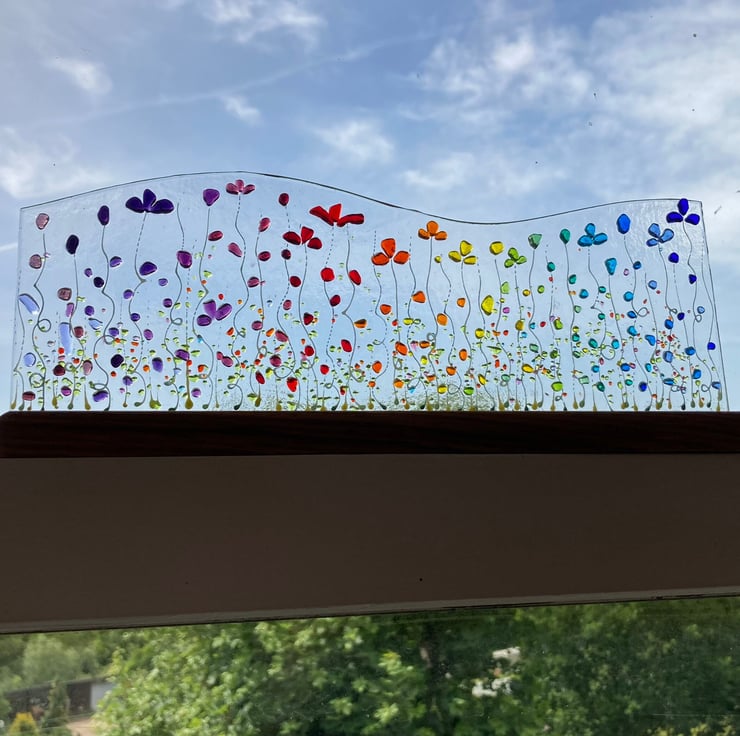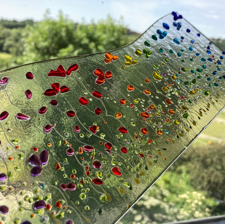 Every picture is individually made so no two are ever exactly the same, due to the unpredictable nature of glass when it is heated to high kiln temperatures. You will receive a piece with the same colours and design with minor variations.