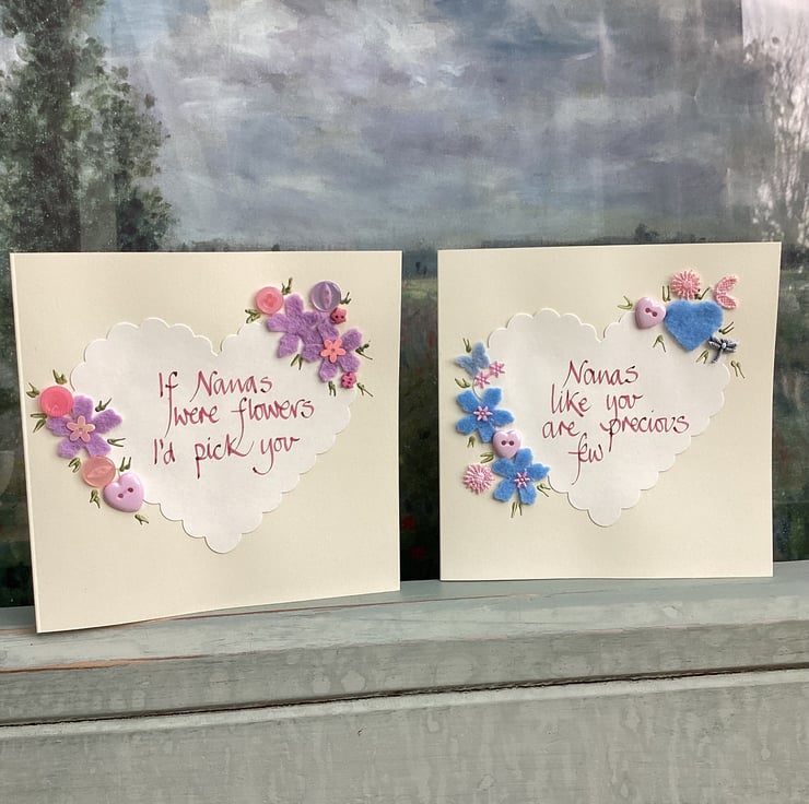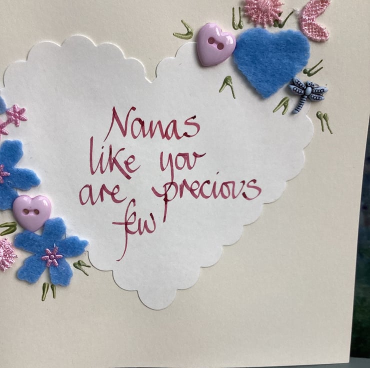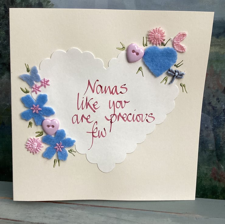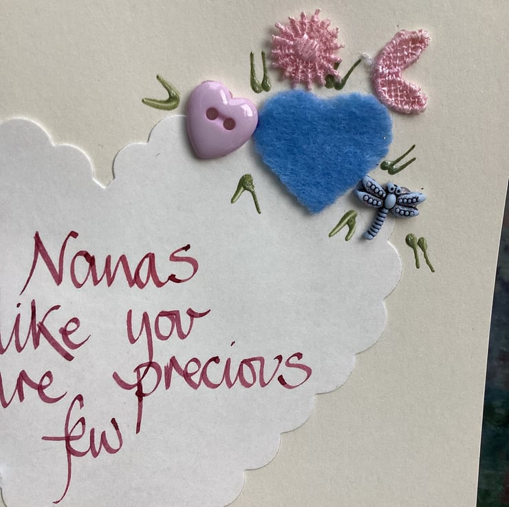 Nanas like you are precious few.Handwritten words onto a heart which is embellished with felt,paper,buttons.