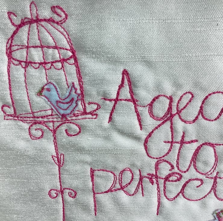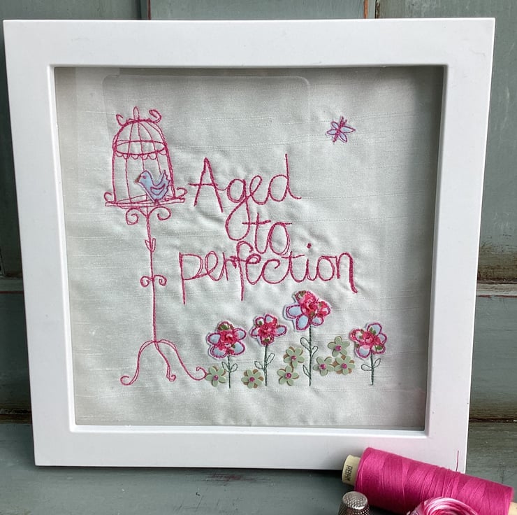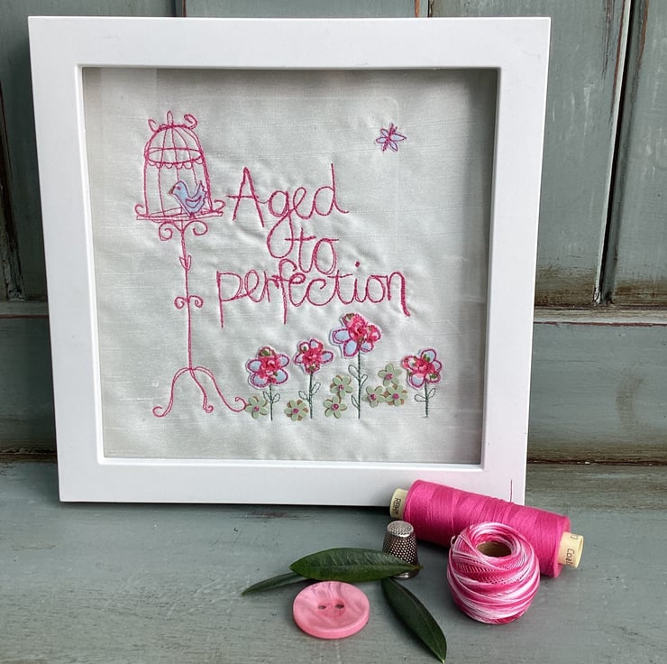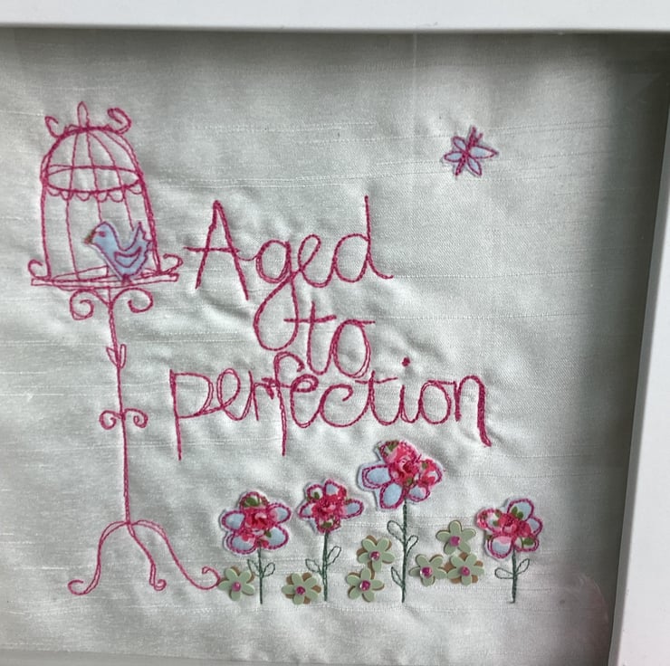 Hand sewn embellishments.Mounted into a shadow box frame size 19cm. Gift wrapped and a gift message can be added.