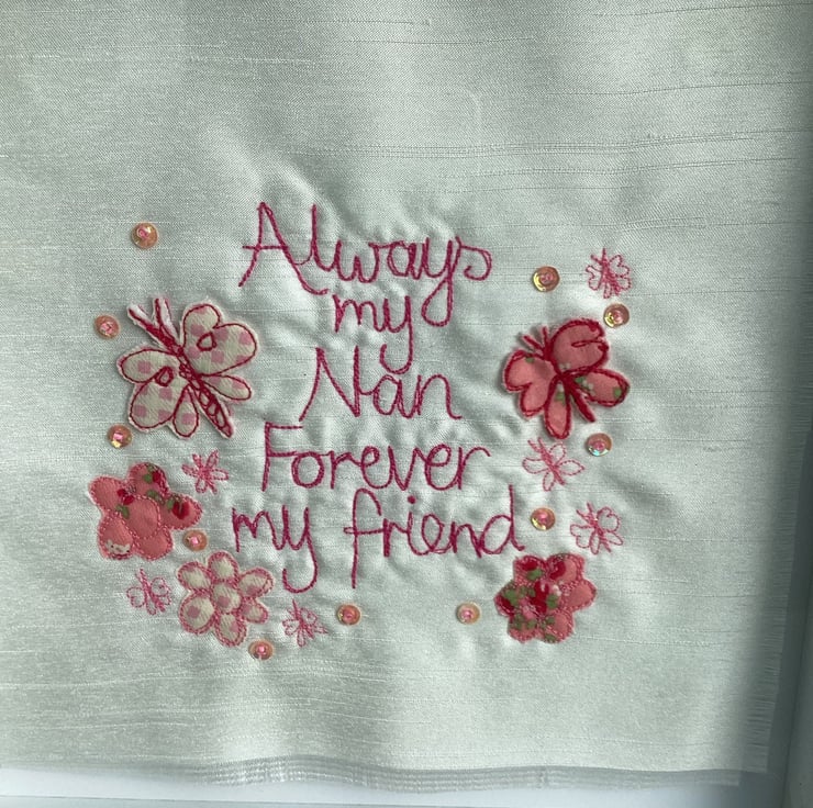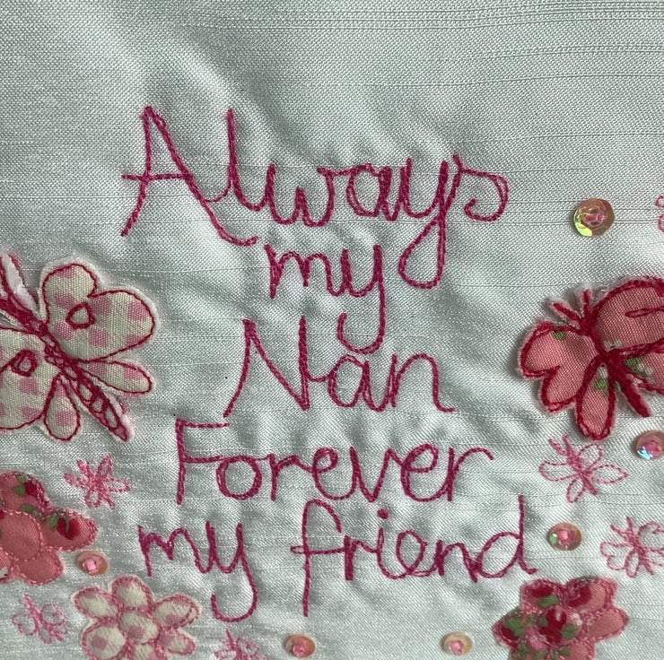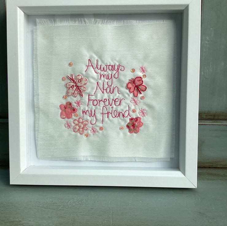 Machine embroidered picture for your Nan.Freehand embroidered in a wooden frame.