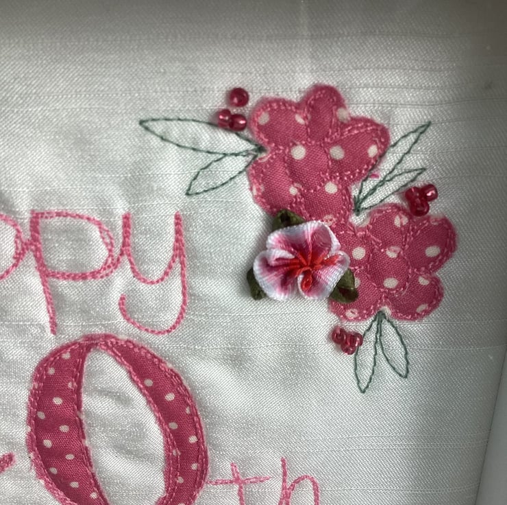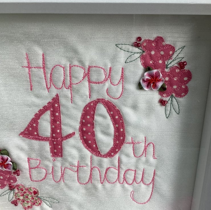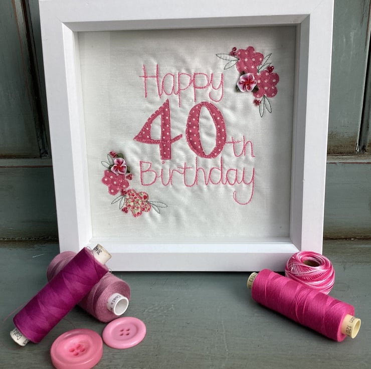 Celebrate a 40th birthday with this embroidered picture.Handmade,and individual.No two are alike.