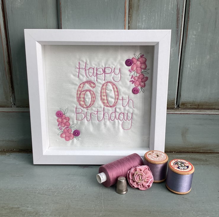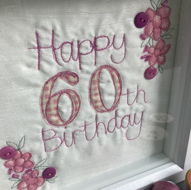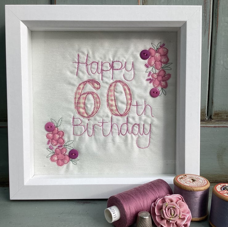 Celebrating a 60th birthday with an embroidered picture.